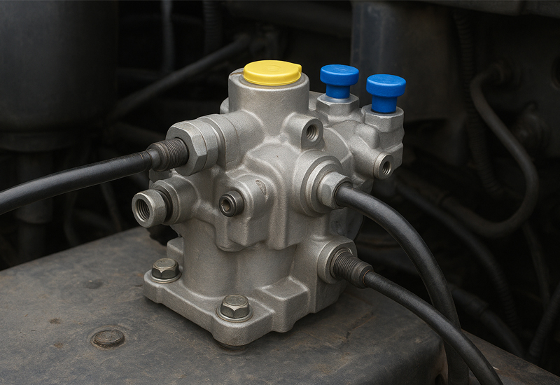 فرمان فعالسازی ترمز کمکی، توسط حسگرهای پدال ترمز و پدال کلاچ صادر میشود. این فرمانها باید با سرعت و دقت بالا توسط سوپاپهای الکتریکی به واحد ریتاردر منتقل شوند. نقص در این مسیرها میتواند عملکرد کل سامانه ایمنی را دچار اختلال کند. برای آشنایی کامل با عملکرد و ریسکهای سامانههای ایمنی، مقاله چگونه سوپاپ کامیون بر ایمنی و بهرهوری وسیله نقلیه تأثیر میگذارد؟ را مطالعه کنید.